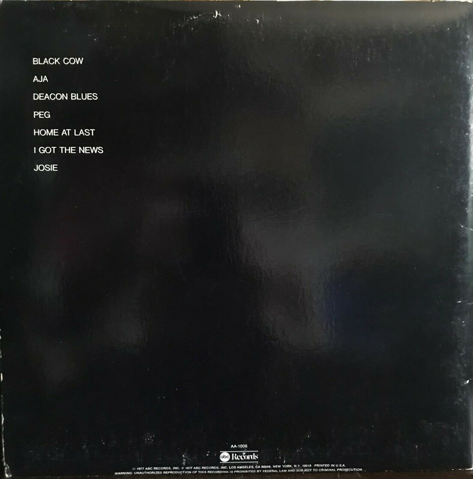 The lp surface was smooth and clean and throughout the entire album there was no more than 3 very very faint ticks. By the way i played cut 1 black cow for this shootout. But the 2010 180 gram vinyl re issue of steely dan s aja is a real gem. Just a very nice 1st press copy easy to find.